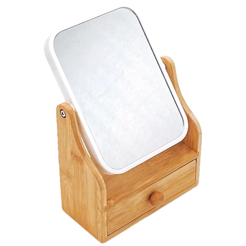 モダンな7インチ竹製木製収納バニティミラー現代デザイン拡大美化粧品ミラー