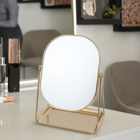 メタルスタンド付きトレイテーブルトップミラー付きバニティミラー